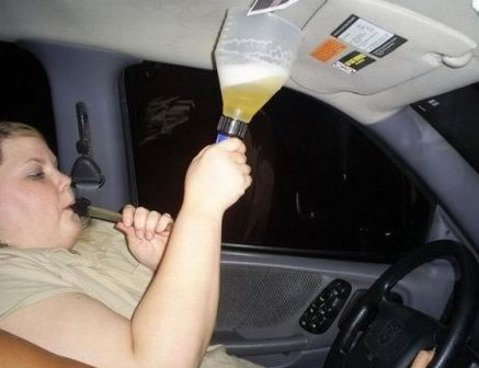 We don’t need to tell you to not drink and drive; we are pretty sure you figured that one out by yourself. The above chick has decided to take it to the extreme and whipped out her beer bong before driving. Either that or she sneaks outside to use one so her friends don’t find out.