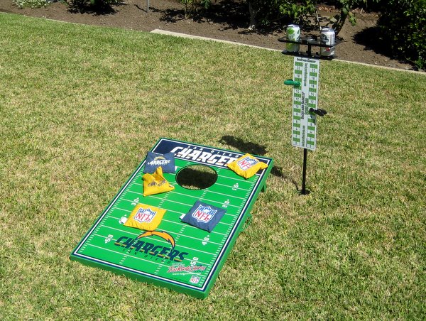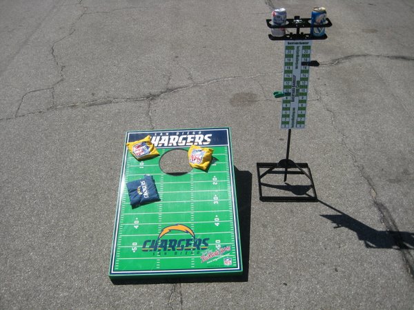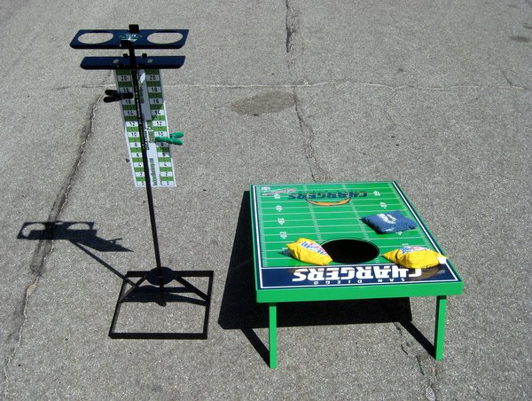 If you are a tailgater that loves to play any of the tailgate tossing games like cornhole, washers, sholf, pub washers, horseshoes, washeroos, etc., you need to get a Backyard Barkeep. Just the peace of mind of not having to worry where you put your drink down will help you concentrate on playing the game more. The built-in bottle openers make it a nice touch as well so now you can toss those bulky promotional key chain bottle openers in the trash. Each Backyard Barkeep is made in the U.S.A. and comes with a scorecard as well.