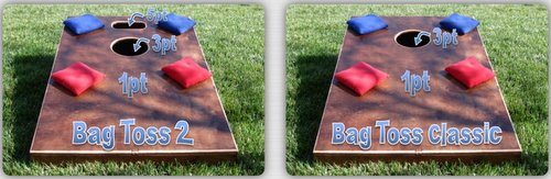 As you can see in the above photo, Bag Toss makes two kinds of cornhole boards. The classic cornhole board is just as you might expect it to be; a single hole, corhole board. Bag Toss 2 is just like a regular corhole board however the slot at the top makes this corhole board unique.