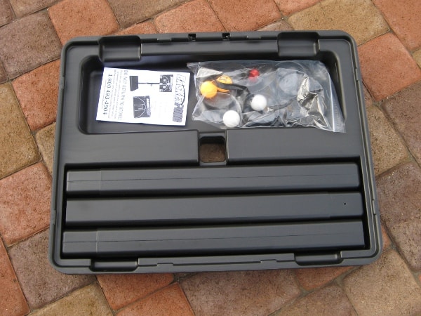 If you chose to skip the video, BasketPong comes in it’s own self-contained carrying case and sets up in minutes. Everything you need to play is contained within the game case. All you need to do is provide the beer and plastic cups and you are ready to play vertical beer pong in less than 90 seconds. Even the easiest of traditional beer pong tables do not set up that fast. And with stadium parking lots reducing tailgating times around the country, every minute counts when it comes to your tailgating time. Take a look at the photos we took along each step of setting up the BasketPong.