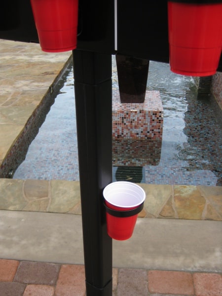 One thing we liked is that you can use the backboard to help bank in the ball and make it into the cup. NBA players may lose style points for using the backboard but not in beer pong. Also, while playing with a friend, we transitioned into playing a game of H-O-R-S-E in that when one player would make a cup, if the other player failed to hit the same cup, the missing player had to drink the cup. We’re sure that once you play the game you can come up with a few rules and changes that suit you and your group of friends.
