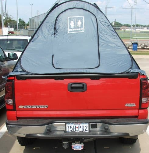 Yesterday we revealed a tailgating tip on how to avoid long lines for the porta-potty while tailgating. The problem with that tip is that if you are not parked close to the RV section, or if the stadium parking lot does not have a special RV section, this technique is useless. You could just go get your own porta-potty and strap it to the bed of your truck but that would be expensive and inconvenient. Or is it?