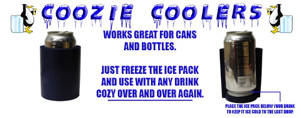 The Beverage Coozie Ice Packs are priced at $1.50 per disc. If you want to buy six, we sell them six (6) for $6. Shipping is $2.00 if you buy one disc or a six pack. To buy any number of these Beverage Coozie Ice Packs, click here.