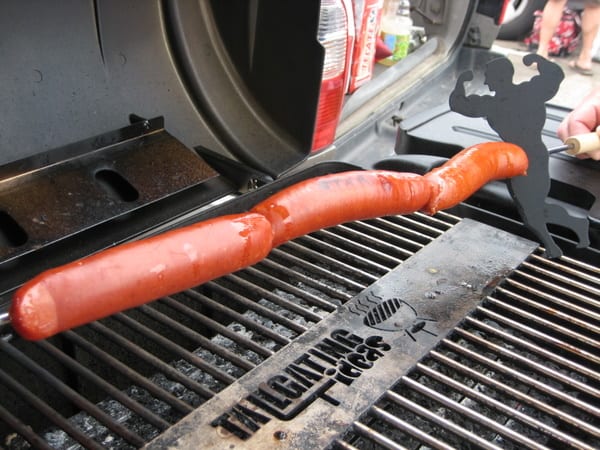 When I first broke out the Big Johnson Poker at the tailgate, it got the typical reaction you would expect. Once I loaded it up with the hot links and placed them on the grill and closed the lid, the novelty had worn off. When I would open the lid to turn them, I would get a smirk from someone if they happened to be looking over but that was about it.