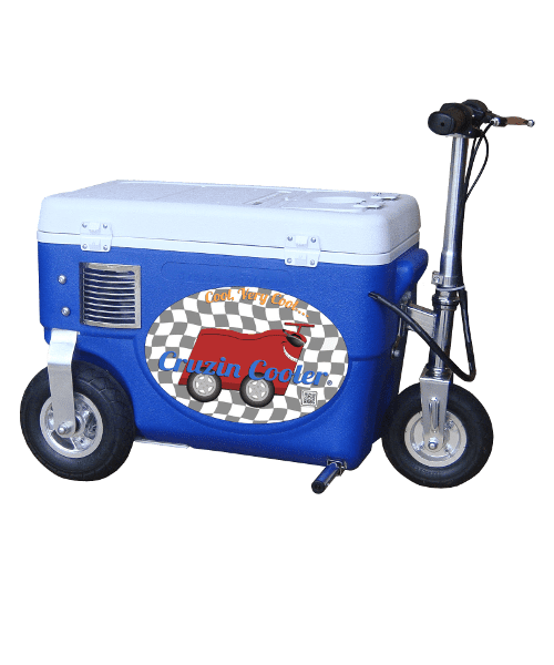 The Cruzin’ Cooler combines two basic necessities of life, the ability to have cold food or a beverage handy along with the means to get somewhere, without walking. The Cruzin’ Cooler is light-weight, comes in two different models (500W & 1000W) and three colors options. A 10 mile range on the Cruzin’ Cooler depending on passenger weight and hill grades is possible.