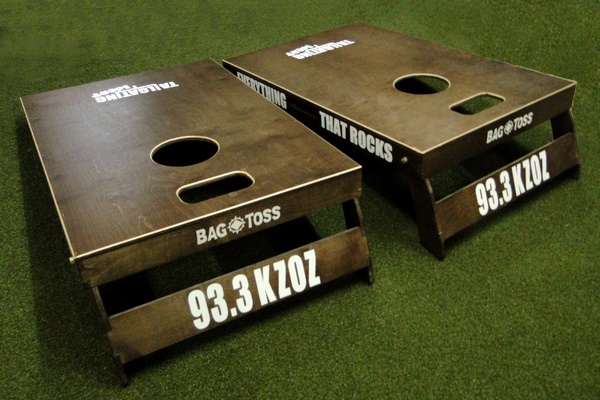 Last football season and again during the 2010 NFL season, TailgatingIdeas.com and KZOZ’s Jeff and Jeremy in the Morning Show partnered up to give away some great tailgating gear to their listeners. Listeners tried their hand at predicting the winners of NFL games all season and the overall best prognosticator walks away with the KZOZ Ultimate Tailgate Party Prize Package. Included as one of the prizes was a custom set of Bag Toss boards. These babies were customized to include the KZOZ motto along with our Tailgating Ideas logo. Take a look at what the eventual winner will receive. (Click images to see larger, more detailed view.)