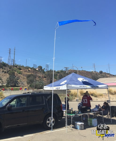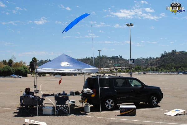 The majority of our football season tailgating takes place at Qualcomm Stadium which is asphalt. We made sure to have the wheel stand to go with the Dori Pole.