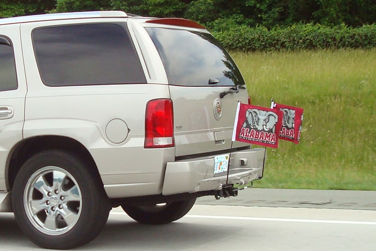 The 2″ and 1-1/4″ Hitch FanEFlag Holder System is regularly $49.99 but they are currently running a 2010 football season special. The system is reduced to $39.96. Flags of your favorite team are sold separately but most flags cost $6.99 each. The different team flags available are too numerous to mention here but you can assume that most college and NFL teams are available.