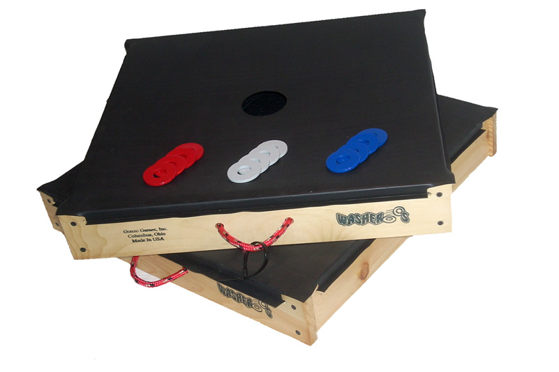 Looking for a little more bounce and play while playing washer toss? Washeroos is the answer. Washeroos is different than any other type of washers tailgate game in that it incorporates a suspended, bouncing rubber mat in it’s design. That means a washer that lands on the top of the mat can potentially be bounced in by the following washer. Very fun and provides for unpredictable games, comebacks and fantastic finishes.