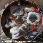 The FiAir stoked chimney produced white ash on the top most briquettes in about 17.5 minutes. Remember that we gave this chimney 3 minutes of initial burn time so the final times could be viewed as (Time – 3 minutes). It was difficult to measure how “lit” the coals were scientifically, so I based it on appearance. I did take some pictures just before dumping the coals to show that the 2 test chimneys looked similar. If anything the FiAir stoked coals were slightly farther along, so you might be able to assume that the coals were ready closer to 17 minutes, so roughly a savings of 5 minutes. Those 5 minutes translated into pre-heating time mean you are cooking when the next guy is just dumping his coals. Furthermore if you have a very large grill, looking at you with the 55 gallon drum made into a grill, and you need to light a lot of coals it would undoubtedly aid in accomplishing that faster.