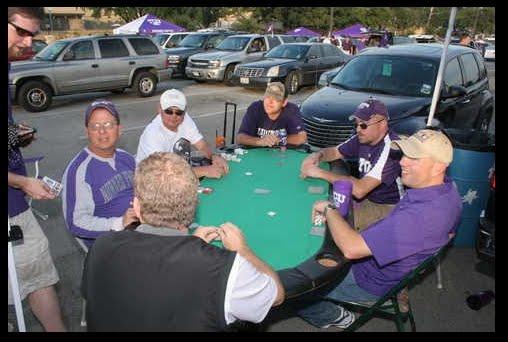 Poker tables are plentiful and cheap and they’re really no different from the folding tables most tailgaters use for their food in the first place. It only makes sense that some tailgaters would fork over another $20 for a felt-top table, unfold it in the parking lot, and try to win some money before the game starts.
