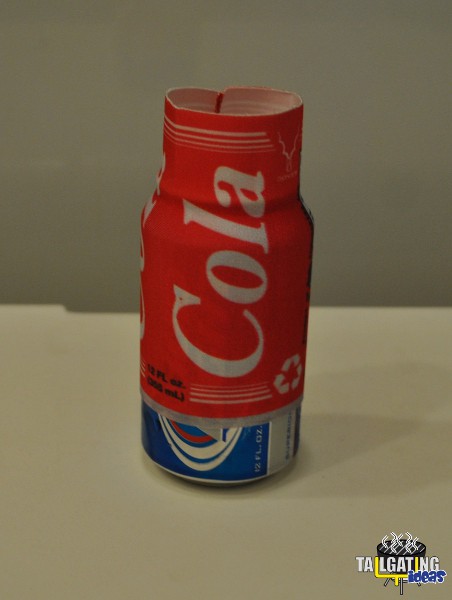 The only comparison to a similar product we can make is with the Can Covers previously mentioned. Those can covers are made by modifying real aluminum cans from actual brand name sodas like Coca-Cola and Sprite. The Kudu Cover resembles a generic cola can and fits snugly over your “other” can. Because most people drink brand name sodas and therefore law enforcement may possibly raise an eyebrow at someone drinking a generic brand in a tailgating environment, you have been forewarned. A positive of the Kudu Cover compared to the aluminum can covers is the fact it fits tightly over the can and provides 100% coverage. The aluminum cans do have a small, open seam on the side where a small portion of the can underneath will still show. The Kudu Cover eliminates this by covering the can completely. There is a thin stitch seam on the Kudu Cover but we would suggest using your fingers or palm of your hand to cover it and position the opened portion of the top nearest the front label.