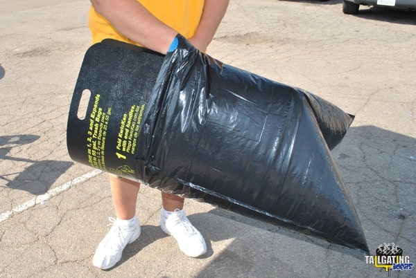 The very nature of tailgating will produce a lot of refuse. Temporary containers such as plastic bags, paper plates, plastic cups and plastic forks, spoons and knives all need to be thrown away during the party once they are no longer needed. Most tailgaters will tie a plastic trash bag to their bumper or even just have the bag lay on the ground while out tailgating. Unfortunately those old techniques aren’t conducive to easily throwing items away. We were recently contacted by the folks at Kwickan who claim they have a solution for those trash bags laying on the ground while tailgating. Take a look at their video.