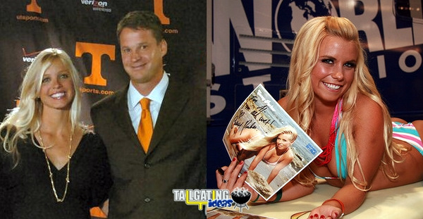 Jimmy Traina over at Sports Illustrated’s Extra Mustard Hot Clicks recently did a segment on athletes and their celebrity look-a-likes. Last week the sports blogoshpere lost their minds was all a buzz over the hiring of Lane Kiffin as the new head coach of the Tennessee Volunteers. The sports bloggers hadn’t worked themselves into a lather over Kiffin’s replacing Phil Fullmer but rather over his smokin’ hot wife, Layla Kiffin, for being, well, scorchingly hot. Unbelievably hot even at eight months pregnant.