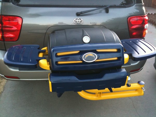 The guy that emailed was seeking info on the grill itself and not just the customization process. I assured him the grill was high quality and was of the same quality you would expect from Freedom Grill. Long story short, he bought a Margaritaville Tailgating Grill took it home and started working on customizing it to be ready in time for this past weekend’s Chargers game when they hosted the Baltimore Ravens. He snapped a few photos with his camera phone and this is the one that showed it off the best.