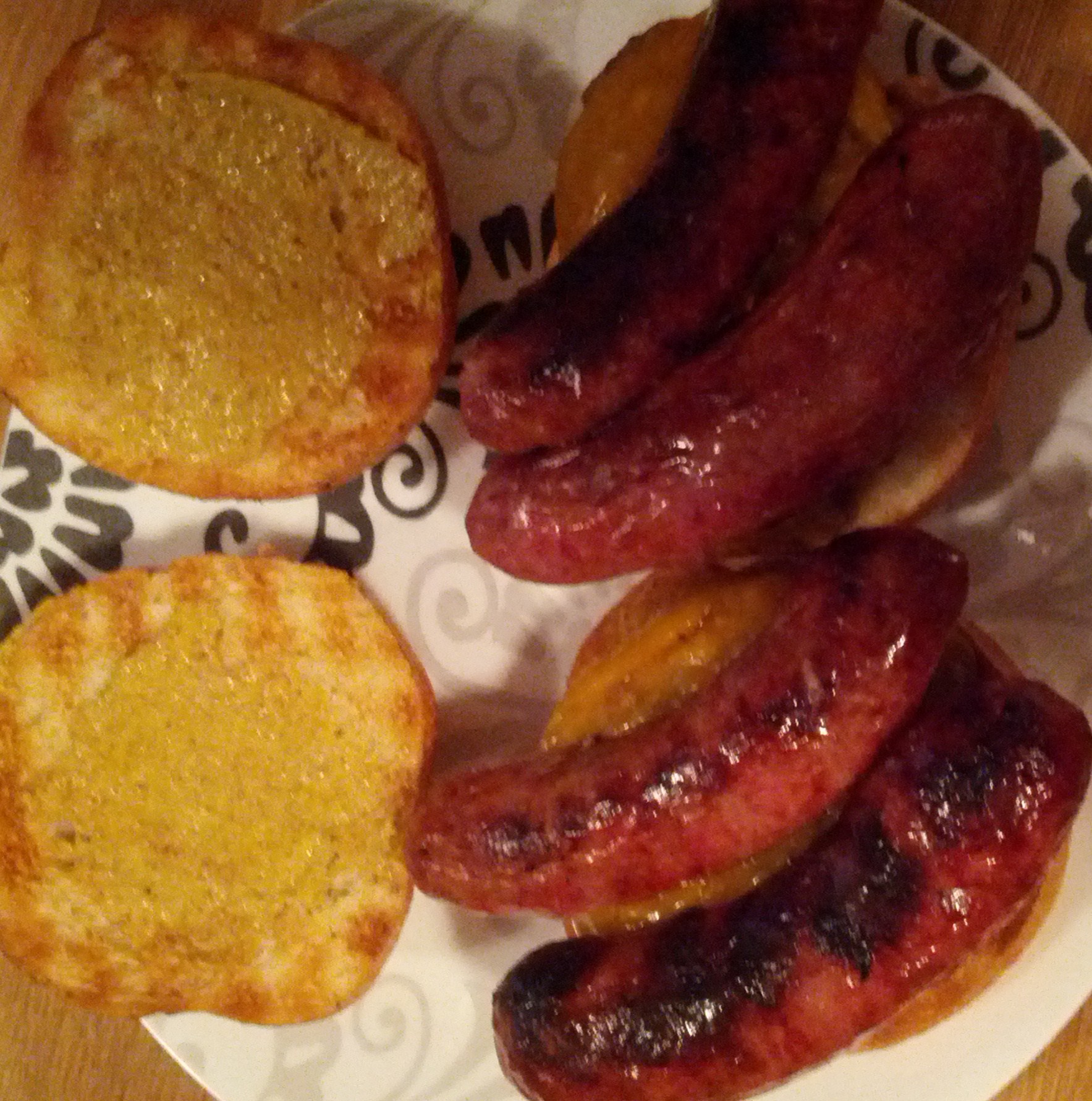 4.) Grill meats until done. ~15-20 minutes for brats, ~10 for burgers. When the burger patties are nearly done top with 2 slices cheese.