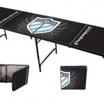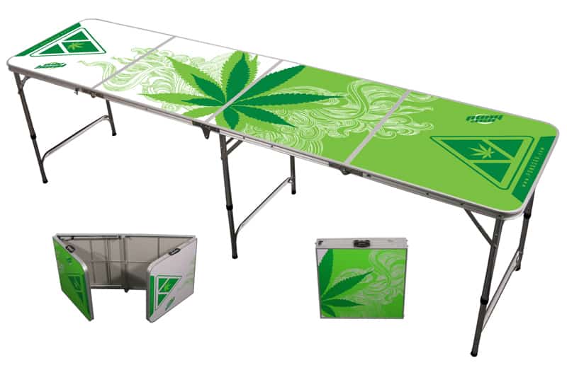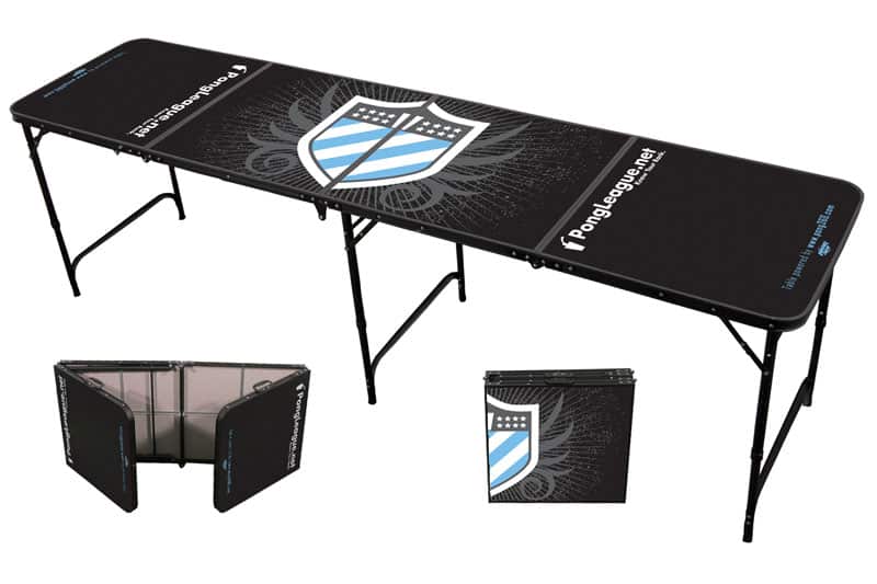 Pong 360 also offers a 7′ table option which comes in the Galaxy color scheme. This table offers the same great features like strong plastic handles, beer pong ball holder, melamine coating, lightweight aluminum construction and the six to 10 cup racking design. The only major difference is that it is a foot shorter, about a pound lighter and folds in half instead of quarters like the 8′ tables from Pong 360. This shorter table, although not regulation length, might be a better option for tailgaters who are pressed for space in their tailgating vehicles.