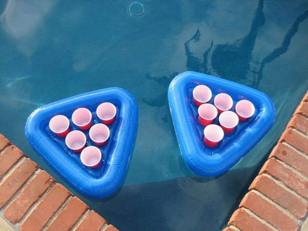 Another cool feature of the Pool Pong Rack is that when you are not playing a game of beer pong, it serves as a floating drink holder. Just make sure to use Etch-It Cups and put your name on your beer or you could end up drinking someone’s backwash.