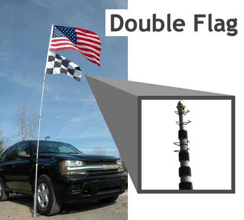 I observed that while the pole is extended, and especially in windier conditions, it is somewhat flexible. Obviously whenever you make things compact and lightweight you make minor concessions to other aspects, such as rigidity. The pictures on the website show a come curve in the pole, and that’s what I experienced as well. Depending on your vehicle or surroundings you may want to pad the pole so that it doesn’t contact anything. I had previously thought that it may move in the wind so I simply put a towel between my car and the pole. To help combat the flex, I shortened up the sections which did not have flags attached. The flagpoletogo.net site says that the pole will withstand wind up to 50mph. I don’t disbelieve this but I also didn’t want to worry about the pole moving around in between cars. I will say that if there wasn’t anything more than a light breeze I wouldn’t hesitate go all the way up to 20′ with it. Tear down was was just as easy, if not easier, than setup.