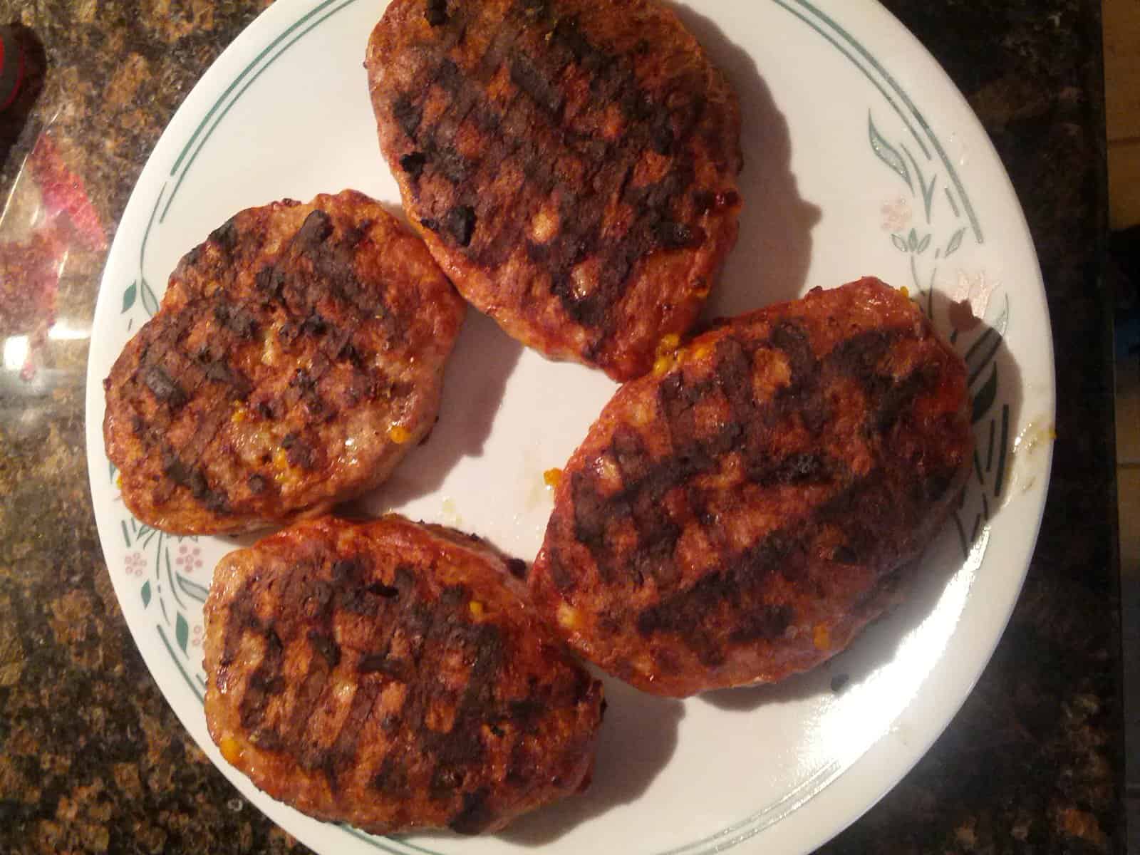 To test these I decided I would use my Weber Q which is my go to tailgating grill. Because I opted not to thaw the Grillers before use I set the burner to a medium low as not to burn the heck out of the outside while I waited for the inside to come up to temp. As soon as the Grillers hit the grate I could immediately smell that bacon aroma. I also took the opportunity to look at the cheese which was quite visible throughout the meat. After about 18 minutes over the heat, the directions called for well done, I pulled the patties. You can see by the pic, these browned up pretty nice.