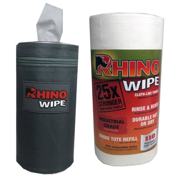 Rhino Wipes are available on Amazon. 75 wipes along with the tote will cost less than $14.