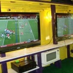 As you can see from the above photo (a more detailed photo gallery is included later on in this post) this is a utility trailer that was converted into a tailgating trailer complete with TVs, microwave, a full bar and all the amenities and creature comforts of home.