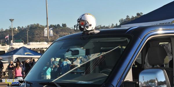 The next test was an extended drive down to San Diego from Orange County this past Monday for the Chargers vs. Broncos Monday Night Football game. I set my cruise control at 75 MPH and was on my way. I was unsure if I was getting any headwind so I thought it would be good to play it safe and keep it at 75 MPH just in case there was a wind over 5 MPH coming at me. The whole 90 minute drive to San Diego the Smack Hat stayed on and was the subject of a number of motorists passing me with the thumbs up and pointing to the football helmet on top of my car. Obviously the other fans on the way to the game thought it was unique and pretty cool or they just would have passed me without any acknowledgement of it.