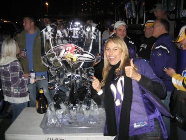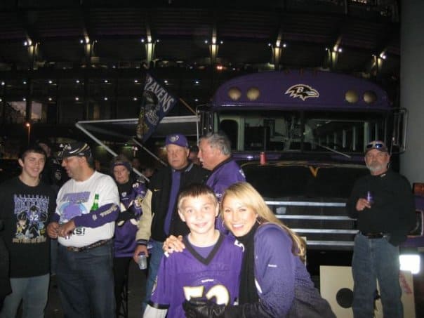 You may know Stacy Keibler from her wrestling career or her appearance on Dancing with the Stars or even her time as a Baltimore Ravens cheerleader. We can now also add “tailgater” to Stacy Keibler’s public persona. She recently attended the Ravens vs. the Steelers Sunday Night Football game and instead of being a pampered celebrity eating shrimp cocktail in the a sky box she was spotted tailgating with the regular folk. She even snapped a few photos and added them to her Facebook fan page. Take a look.