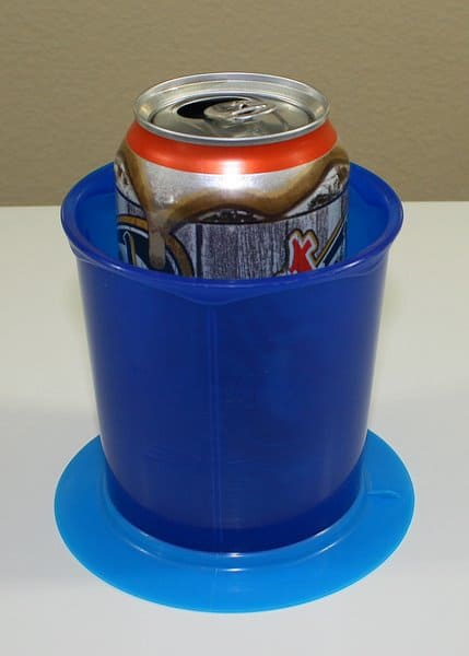 As you can see from the above photos, the Stickey Cup is a plastic cup itself with a rubber suction cup on its base. I was sent a sample Stickey Cup and was amazed at how well it stuck to flat, non-porous surfaces. I stuck the Stickey Cup to my granite counter top in the kitchen and placed an open can of soda in it. I intentionally bumped and knocked at the Stickey Cup and it would not budge. The width of the cup is also wide enough to handle cans, bottles and even tumblers. As I was testing it I thought to myself, “If I had a few of these years ago, how many spilled cans of beer could I have back in my life right now?”. Take a look at a few videos of the Stickey Cup in action.