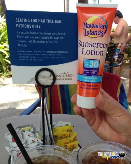 Last week I took a vacation in Hawaii and stayed at one of the major hotels along Waikiki. Of course it had the requisite poolside bar that served mixed drinks but as you might expect, a hotel bar’s prices in Waikiki are not cheap. I decided to put the Sunscreen Flask to the test and thought this would be the perfect environment. (Click the images below for larger view of the Sunscreen Flask in action.)