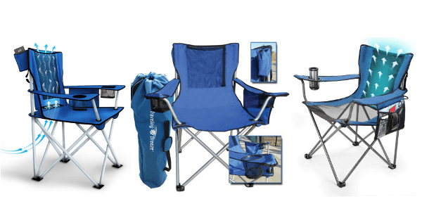 Even though the air is getting cooler and daylight savings has ended, you may be in an area where tailgating requires you to cool down. If that is the case, you may want to read further because this tailgating chair, the Traveling Breeze Fan-Cooled Chair, is right up your alley.