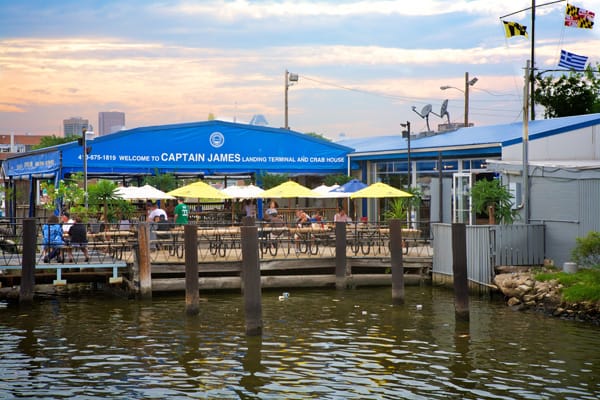 Since I had a little time on my hands, when I wasn’t sharing responsibility for spotting Channel Markers and Buoys, I did some research on my Blackberry, and found that Captain James Crab House was one of the best Crab Houses in the Baltimore area, and, lucky for us, the only one in the Inner Harbor area with its own dock where you could tie up your boat and enjoy a Crab Feast either on your boat or on their dock. I also used the time and my trusty Blackberry to call and check on the availability of their Crabs and their sizes. Yes, size is important! I was told that they had plenty of Crabs, and that they had Jumbo Crabs for $89.00 a dozen. So, as we approached the Harbor, I called ahead to alert them of our impending arrival and to order 3 dozen, hot, steamed Crabs smothered in spicy Old Bay seasoning, and several baskets of Old Bay seasoned fries. In Philly, we call these “Crab Fries”, but a local restaurant, Chickie & Petes, has copyrighted that name, so every place else, including Maryland Crab country, must call them “Seasoned Fries”, or at Captain James, “Boardwalk Fries”.
