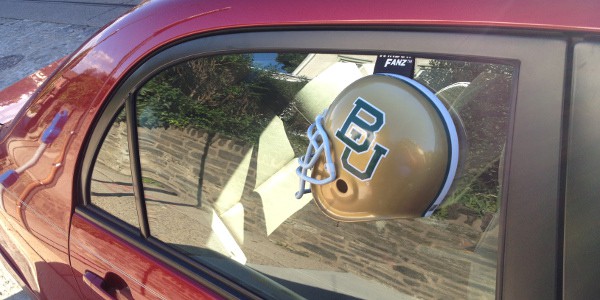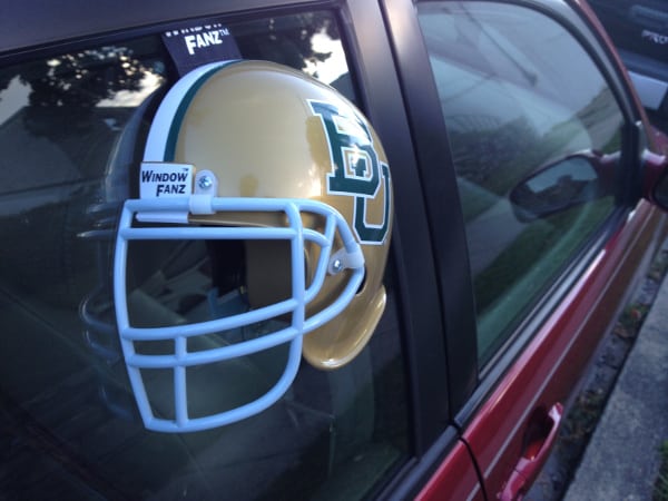 My Baylor University helmet arrived the morning I was heading down to the Jersey Shore for Labor Day weekend. I was running late, but it only took about 30 seconds to place it on my Toyota Corolla. After that, I was off and running, taking highways and byways and zipping in and out of the holiday traffic. When I reached my destination, the WindowFanz was safe and sound, right where I left it.